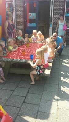 Kinderen en ouders van Peuterspeelzaal Puk en Muk sluiten gezellig het schooljaar af op 't Weidenest.