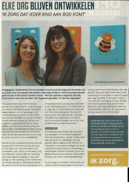 Twee van onze collega's zijn geïnterviewd over hun passie: werken met jonge kinderen. Hieronder kun je het gehele interview lezen.